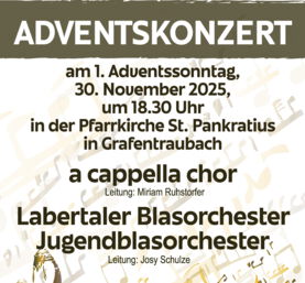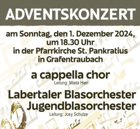 Adventskonzert am Sonntag, den 1. Dezember 2024, um 18.30 Uhr, in der Pfarrkirche St. Pankratius in Grafentraubach